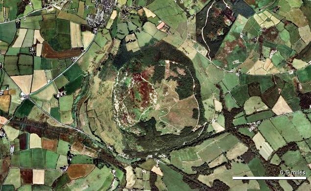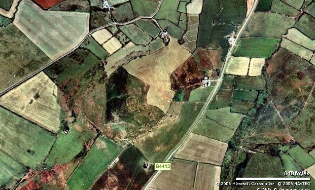 From the western side of Llangybi holy well, follow the footpath, which leads around the edge of the wood that climbs behind the well. Keep following path through the wood and go through gap in the wall that runs across the top. Walk up the hill, go through another gap in a field wall and follow path to fort.